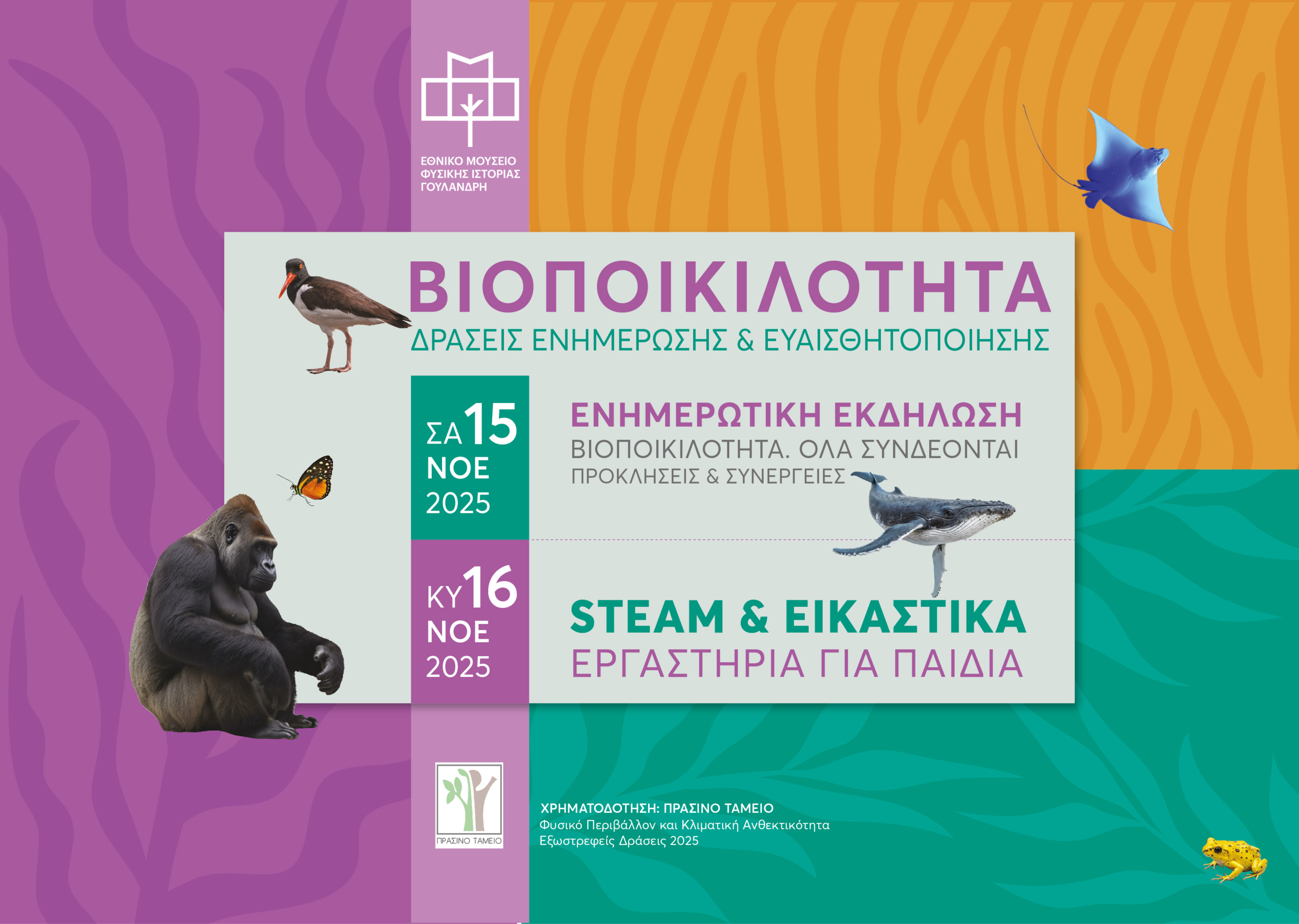 Αξιοποιώντας τη νέα έκθεση «ΒΙΟΠΟΙΚΙΛΟΤΗΤΑ. ΟΛΑ ΣΥΝΔΕΟΝΤΑΙ», το Μουσείο προσκαλεί μικρούς και μεγάλους σε ένα πλούσιο διήμερο που περιλαμβάνει: