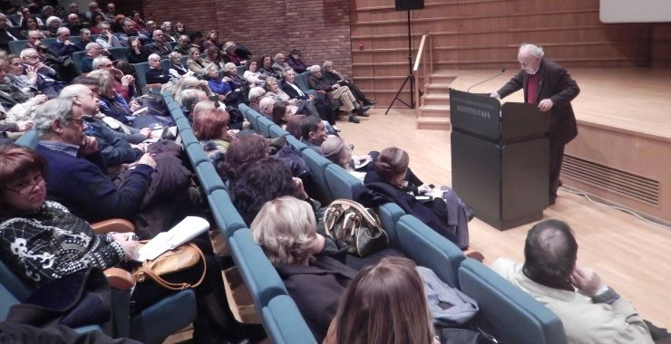 Περισσότερα από 200 άτομα παρακολούθησαν με πολύ μεγάλο ενδιαφέρον την ομιλία της Ομότιμης καθηγήτριας Φιλοσοφίας των Πανεπιστημίων Αθηνών και Κρήτης κ. Μυρτώς Δραγώνα-Μονάχου με θέμα: «Ο Αριστοτέλης τότε και τώρα για τη Φύση, τον Λόγο και τον Άνθρωπο».