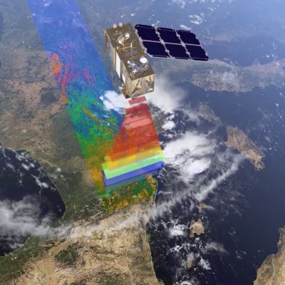 Μικρή φωτό: Eικόνα της δορυφορικής υπηρεσίας. Με τη διαδοχική λήψη εικόνων υπολογίζονται αυτόματα επτά φασματικοί δείκτες για δεδομένη χρονική στιγμή και τα αποτελέσματα καταχωρούνται σε βάση δεδομένων και καθίσταται εφικτό να υπολογίζονται η περιοδικότητα και η διάρκεια της παρουσίας νερού και να χαρτογραφούνται οι μόνιμα, εποχικά ή προσωρινά κατακλυζόμενες εκτάσεις των υγροτόπων.
