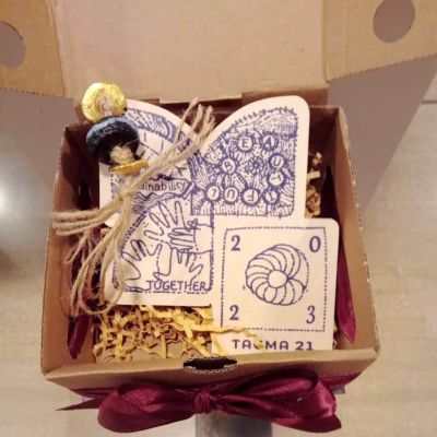 Το Γούρι 2023 είναι φτιαγμένο χειροποίητα με οικολογικά υλικά από τους καλλιτέχνες της ομάδας TAGMA21, ένα Μουσείο Τεχνών που δημιουργήθηκε για να ενσωματώσει άτομα με σύνδρομο Down στον εργασιακό χώρο μέσω της καλλιτεχνικής έκφρασης.