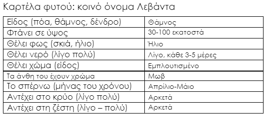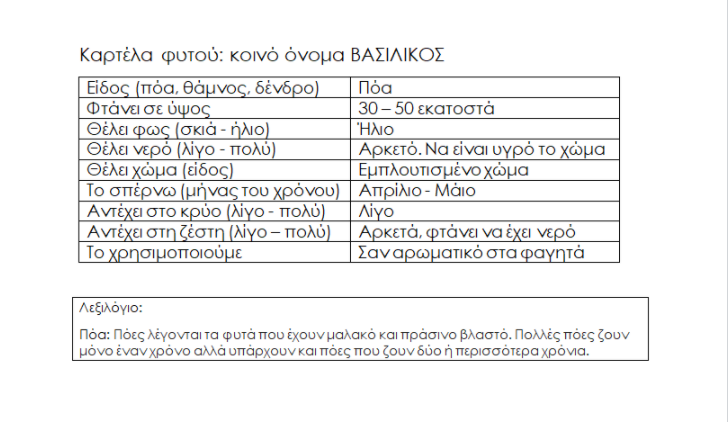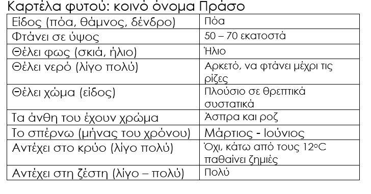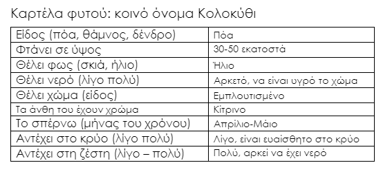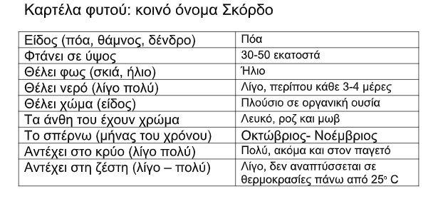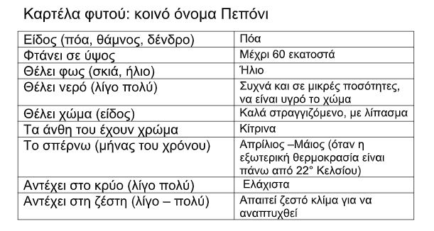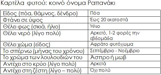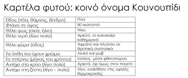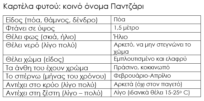 Καρτέλα φυτού: